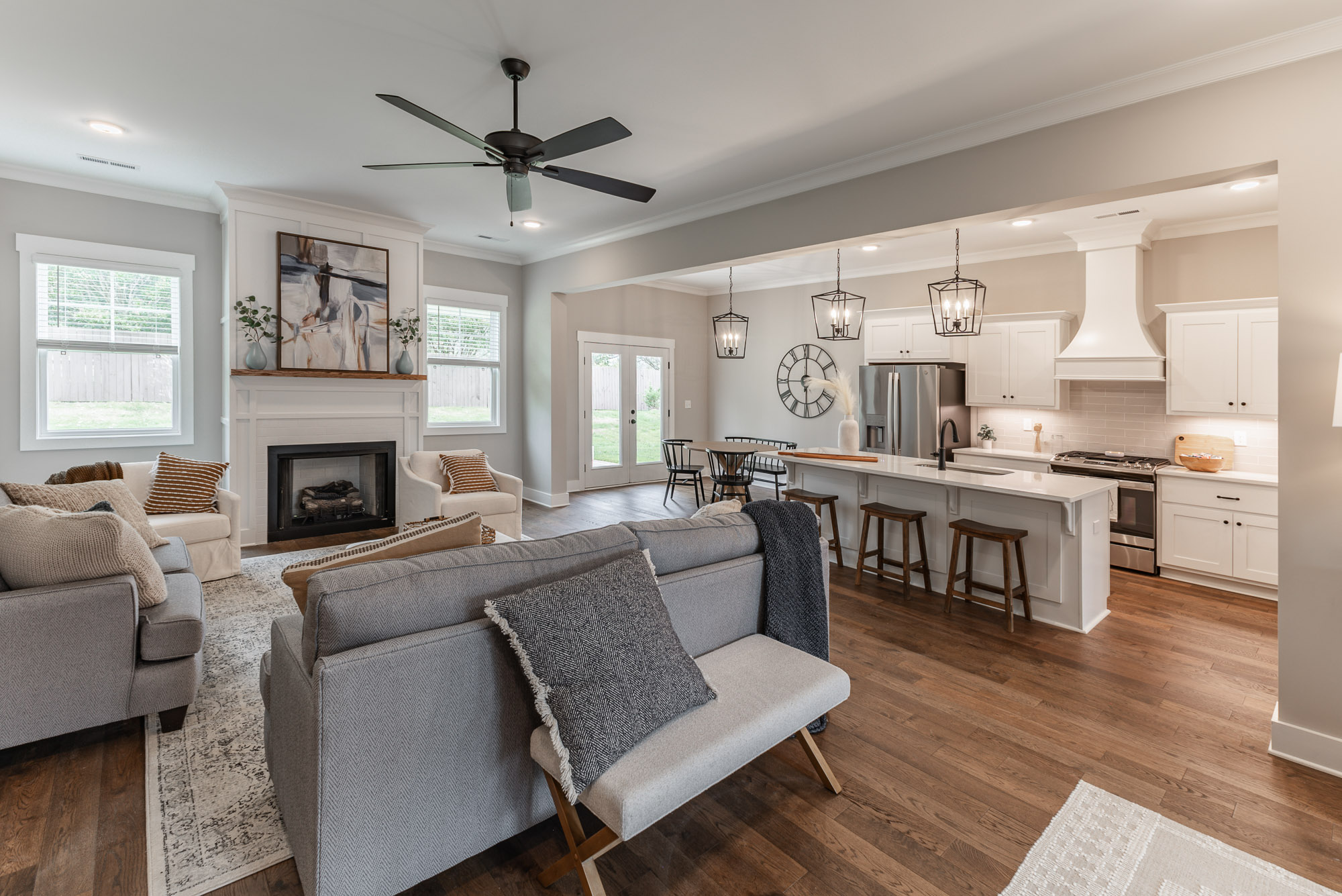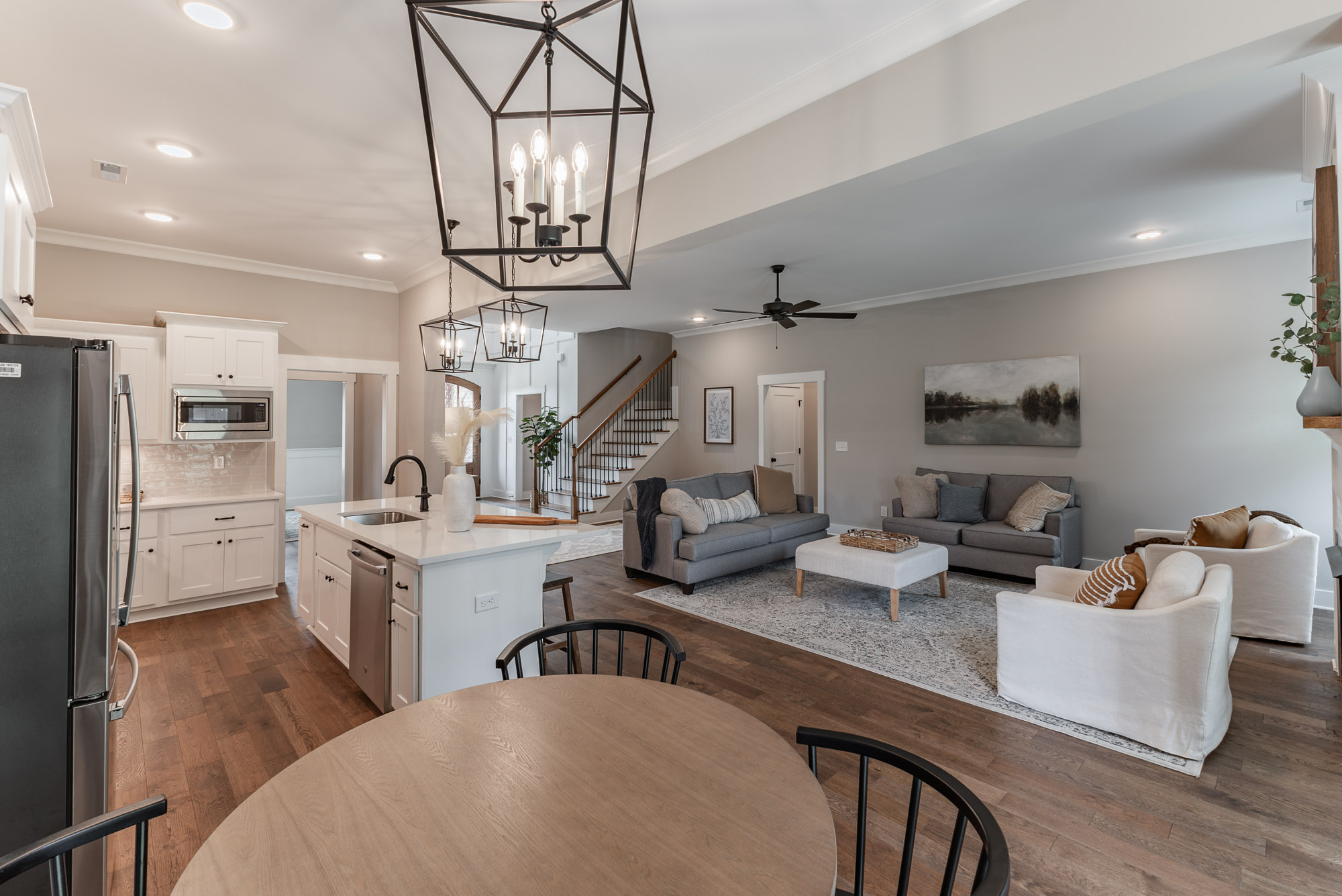 Ayers Farm is conveniently situated in New Market, AL, offering easy access to local schools, shopping centers, dining options, and recreational facilities. It’s an ideal community for those seeking a blend of rural charm and modern amenities. The Baldwin's impressive floorplan boasts 5 bedrooms and 3.5 bathrooms, providing ample space for large families or those who love to host. The primary bedroom on the main floor is spacious and comfortable, offering a peaceful retreat for homeowners to relax and unwind. The upper level of the Baldwin floorplan features a large bonus room, perfect for entertaining or family fun. The upper level also features 4 additional bedrooms and 2 full bathrooms. The open floor plan of the Baldwin is perfect for entertaining, with a large living area that seamlessly flows into the dining area and kitchen.