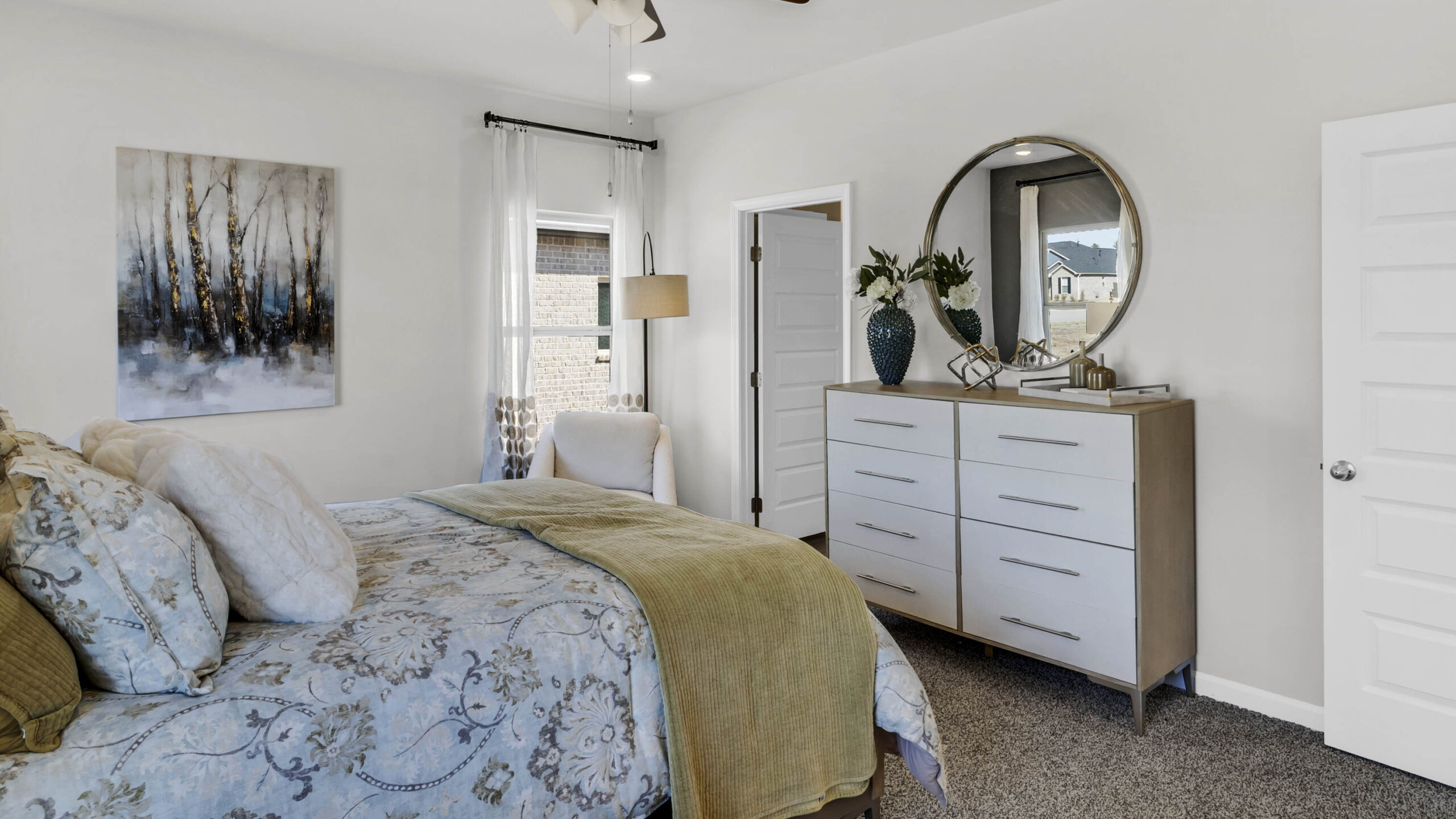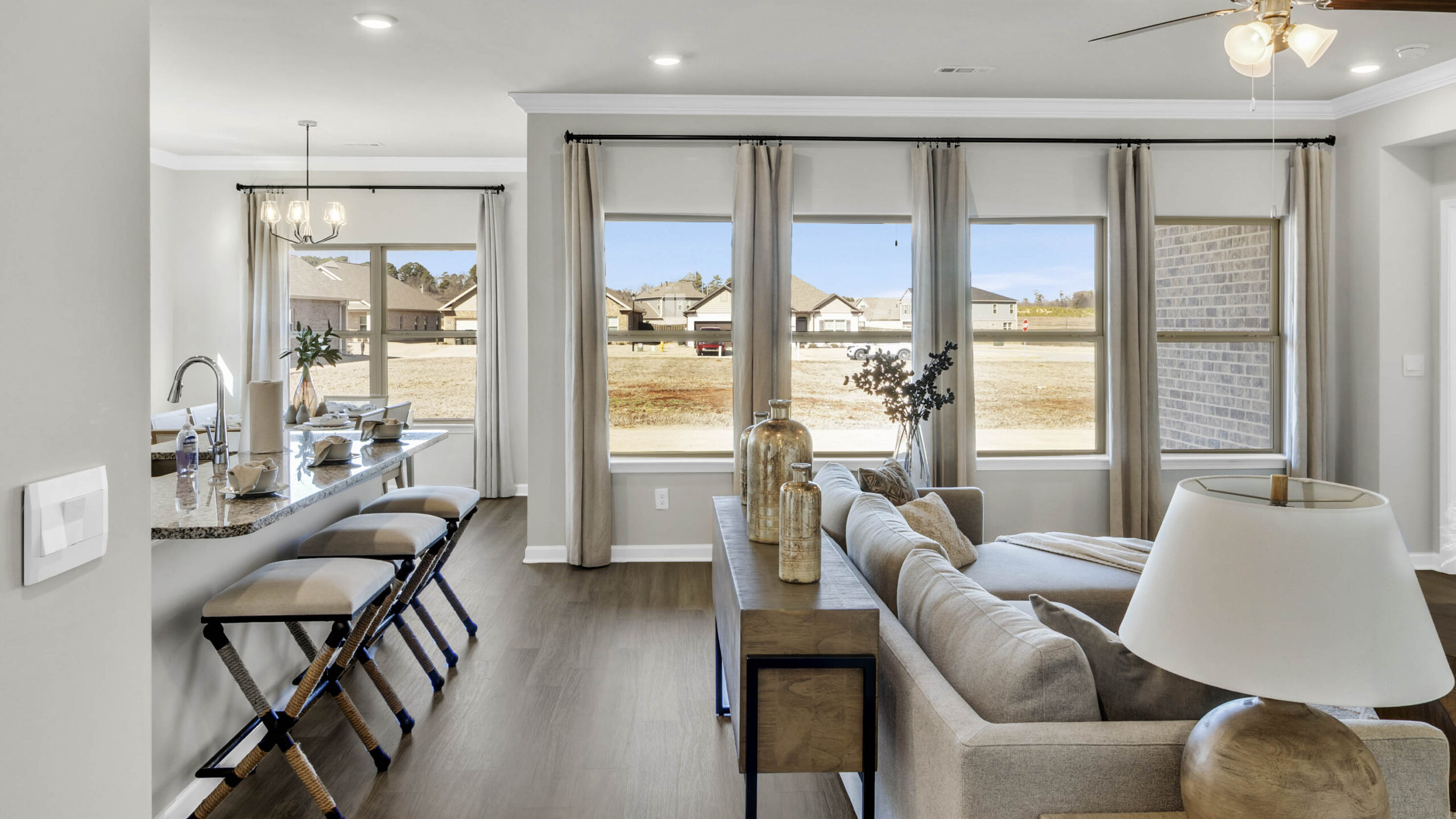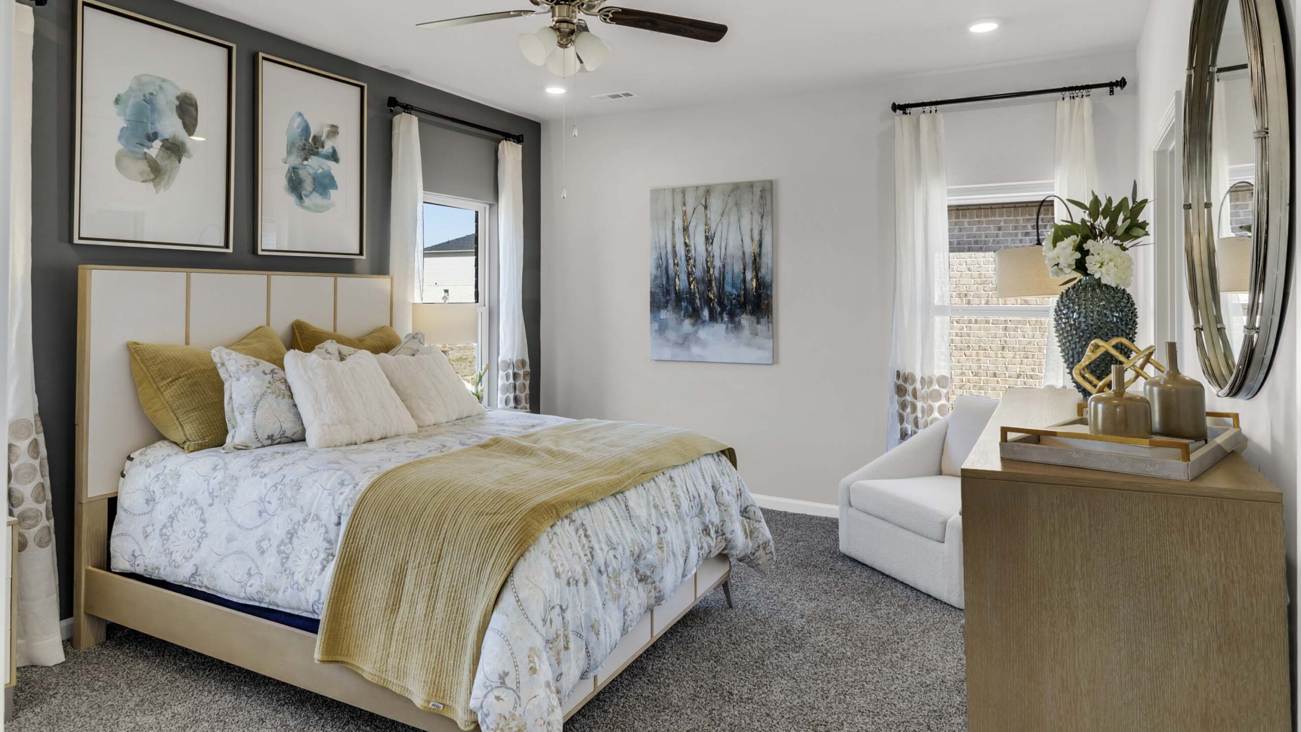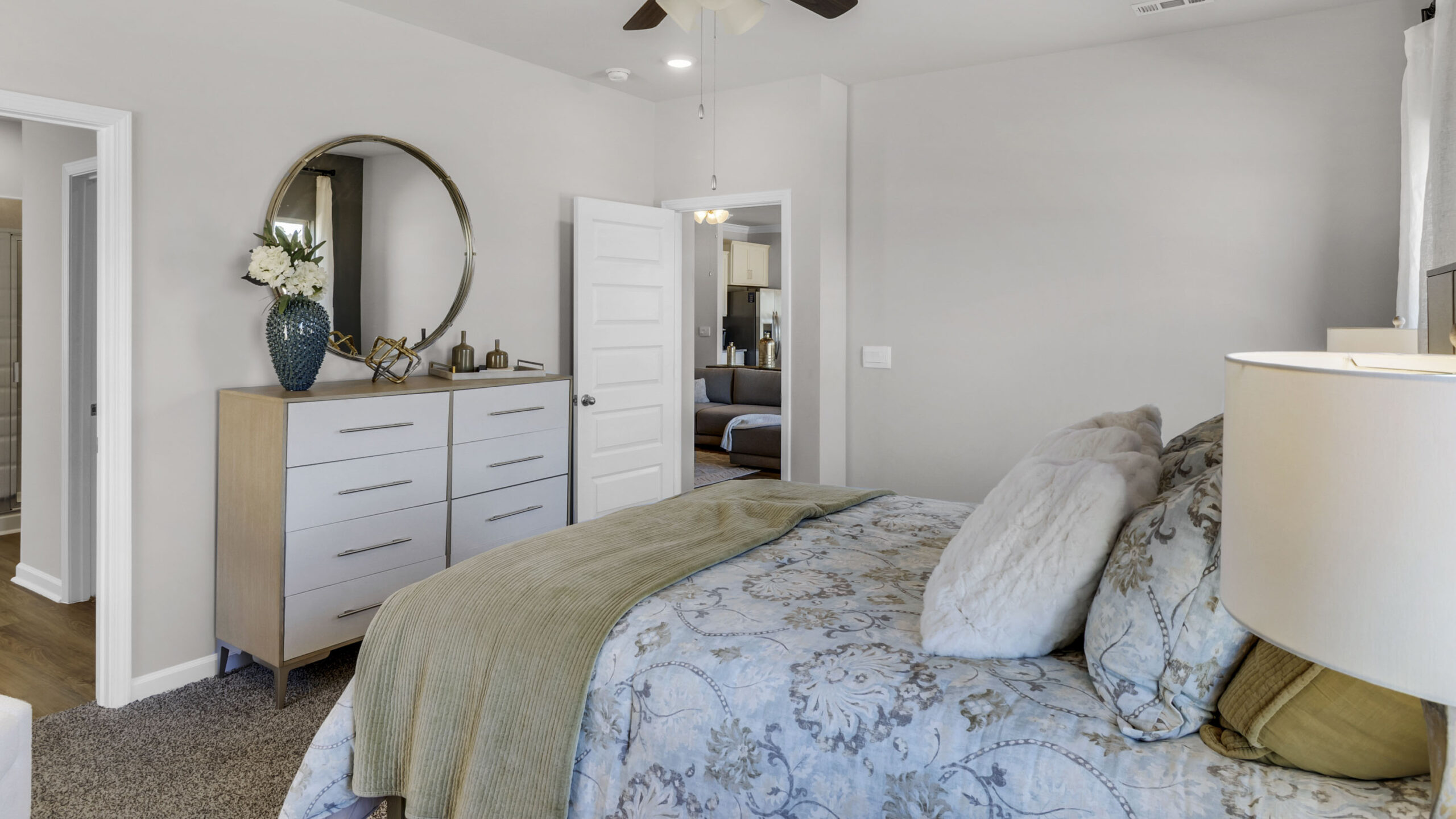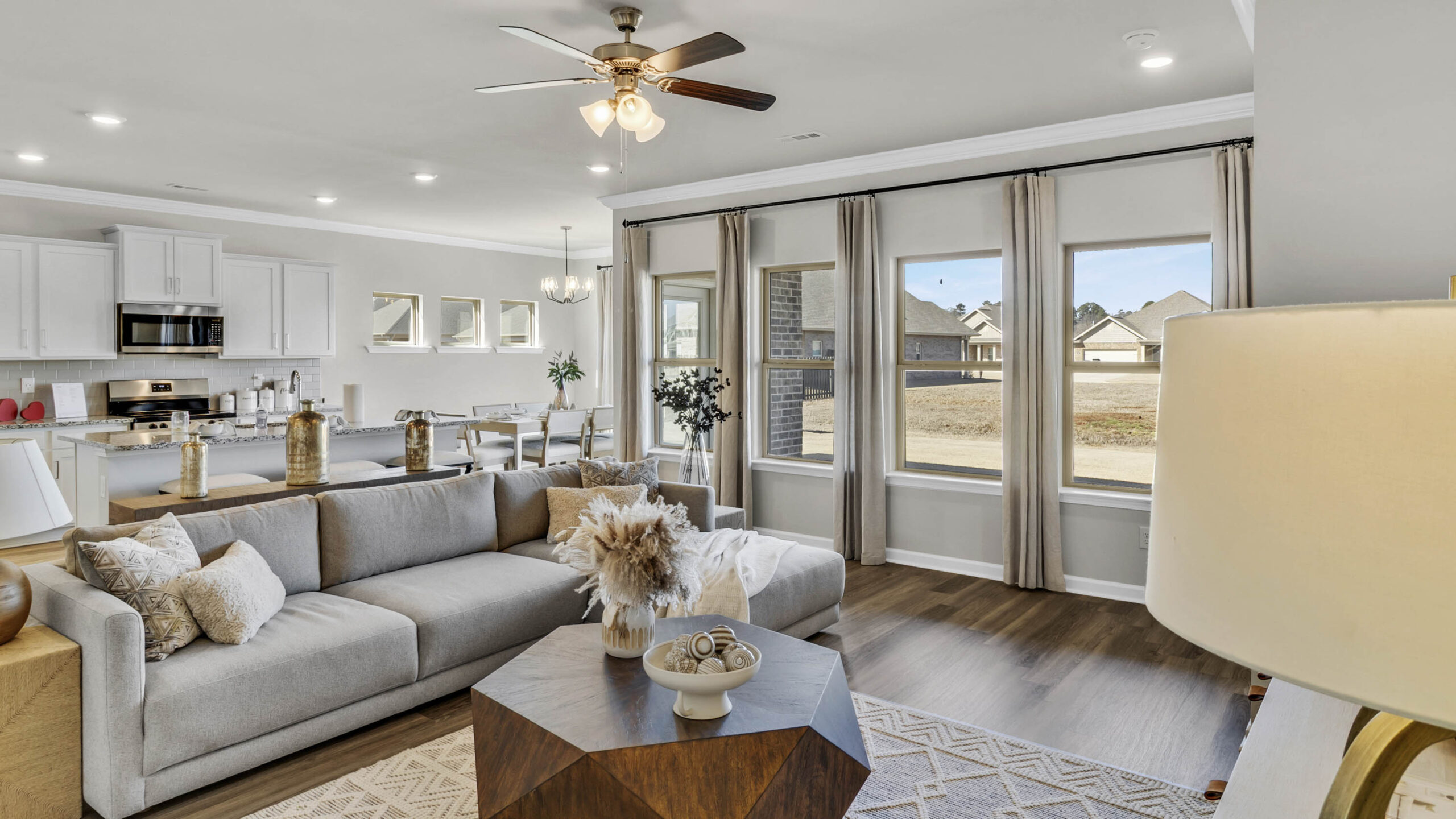 The Madison is a spacious 4-bedroom, 3-bathroom home with a 3-car garage, thoughtfully designed to combine open-concept living with privacy and functionality. The main living area is centrally located, creating a perfect flow for everyday living and entertaining. The isolated Owner’s Suite offers a peaceful retreat with double vanities, a soaking tub, and a separate shower for added luxury. Two secondary bedrooms are situated in their own private wing and share a full bathroom, offering quiet separation from the rest of the home. The third secondary bedroom has its own en-suite full bathroom, making it ideal for guests or a private home office. Additionally, the Madison features a private outdoor living space with stunning views, offering the perfect spot for relaxation and enjoyment. Every detail in the Madison is designed to enhance both comfort and style, providing the ideal balance of open, functional spaces and private retreats. Whether you’re entertaining guests or enjoying time alone, this floor plan offers the perfect setting for every lifestyle.