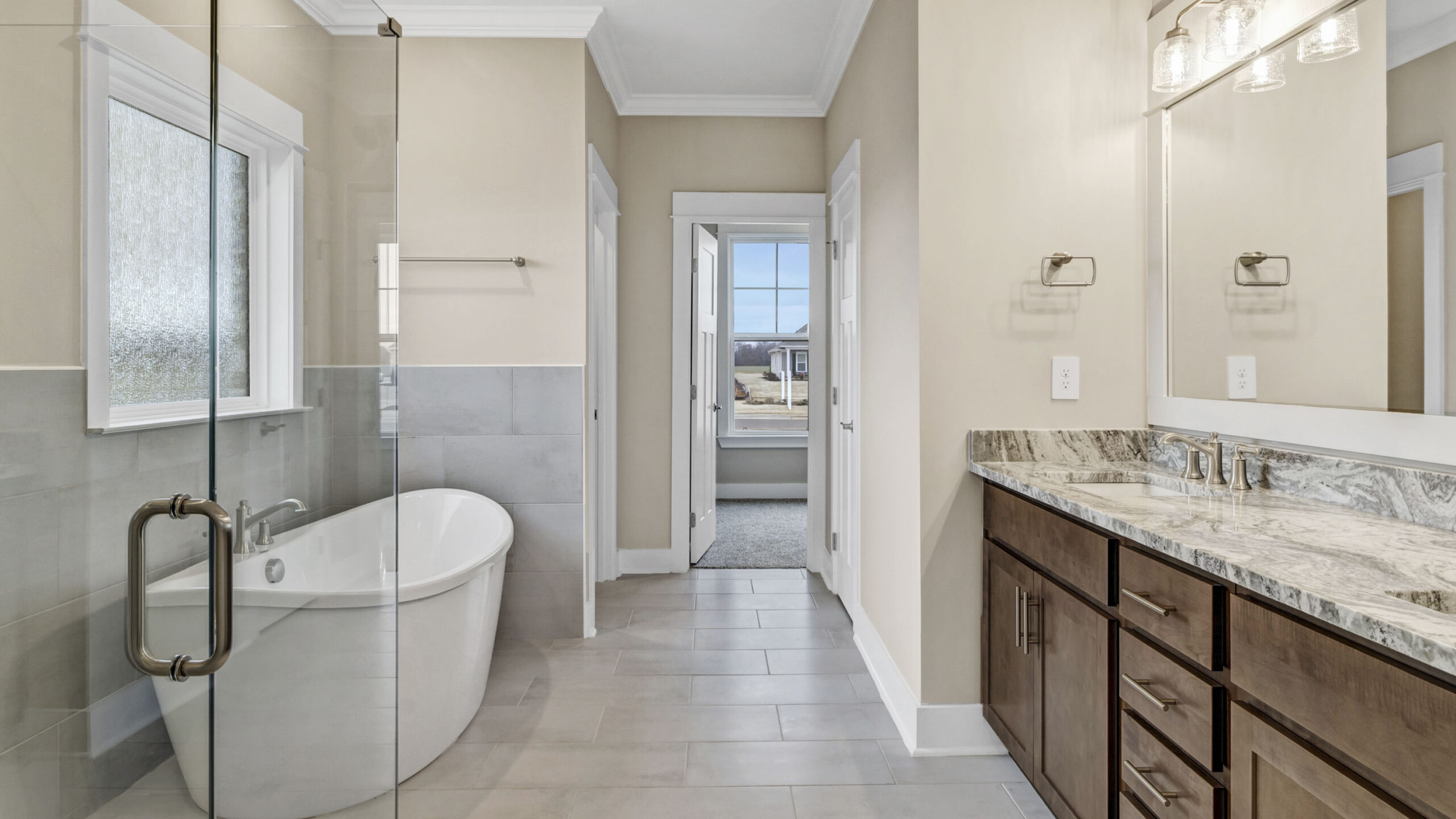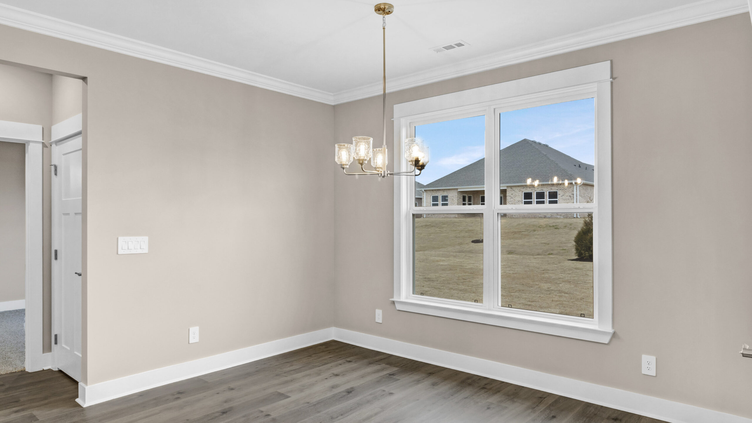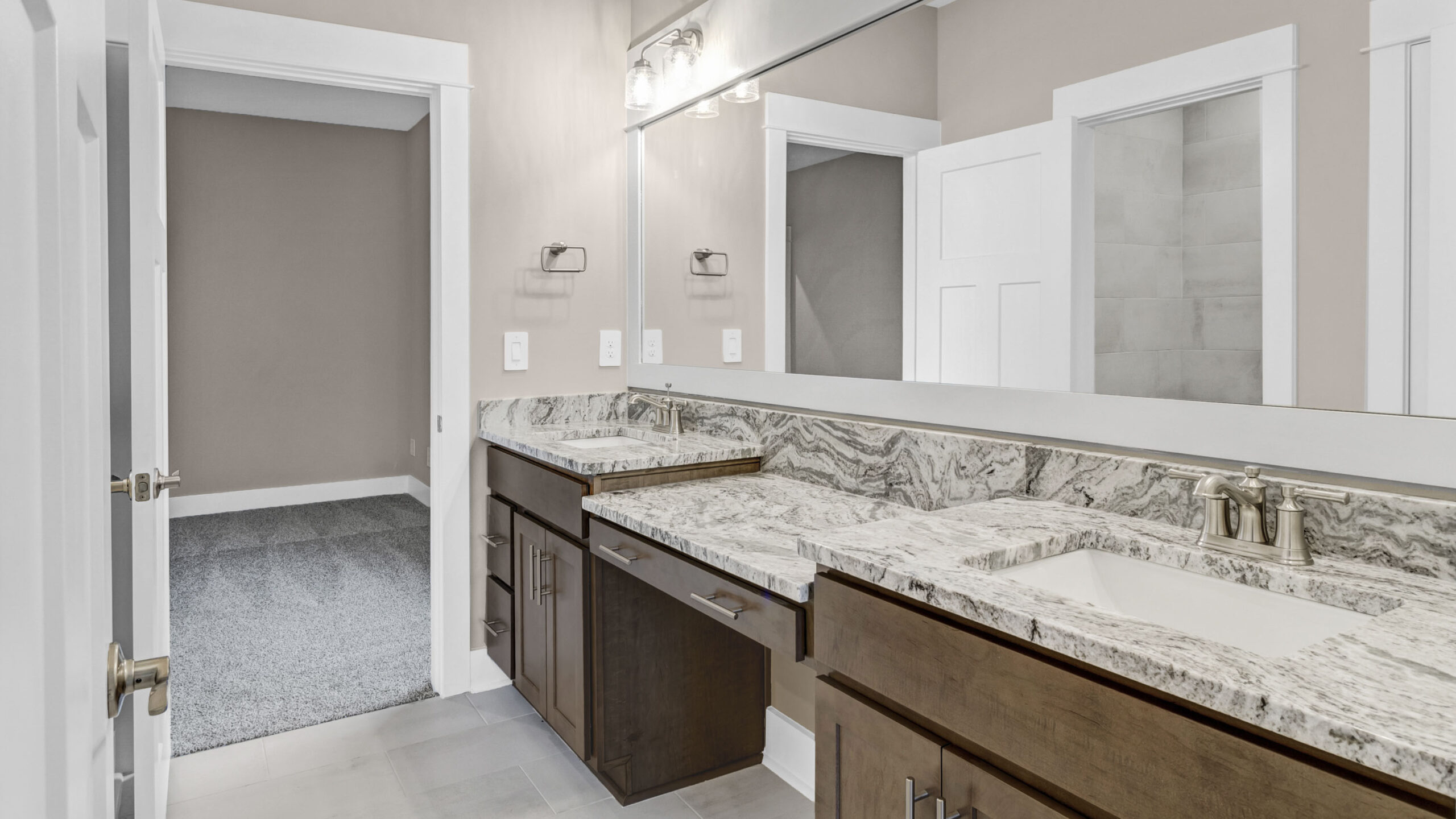 A space for every imaginable use, this home exudes luxury and comfort. Enter through the heavy-wood door into the foyer. The open layout allows the formal dining room to open to great room area and continuously flow into the chef’s kitchen. The gourmet kitchen boasts beautiful painted cabinetry, gorgeous granite counters, a large work island, gas cooktop, stainless steel dishwasher, and built-in wall mounted oven and microwave.