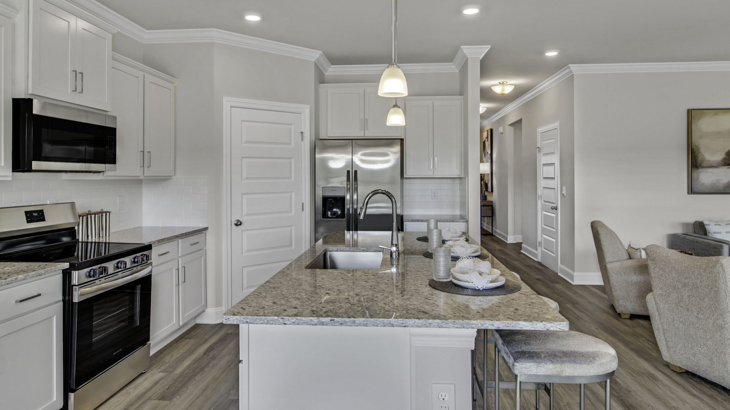 At Inverness Springs, you'll find spacious, open-concept floor plans that seamlessly blend modern living with family-friendly functionality. Gourmet kitchens, equipped with sleek stainless steel appliances and luxurious granite or quartz countertops, are perfect for everything from everyday meals to special occasions. Each home also includes Home Is Connected®, our state-of-the-art smart home automation package, allowing you to easily control your home’s features with a simple touch.