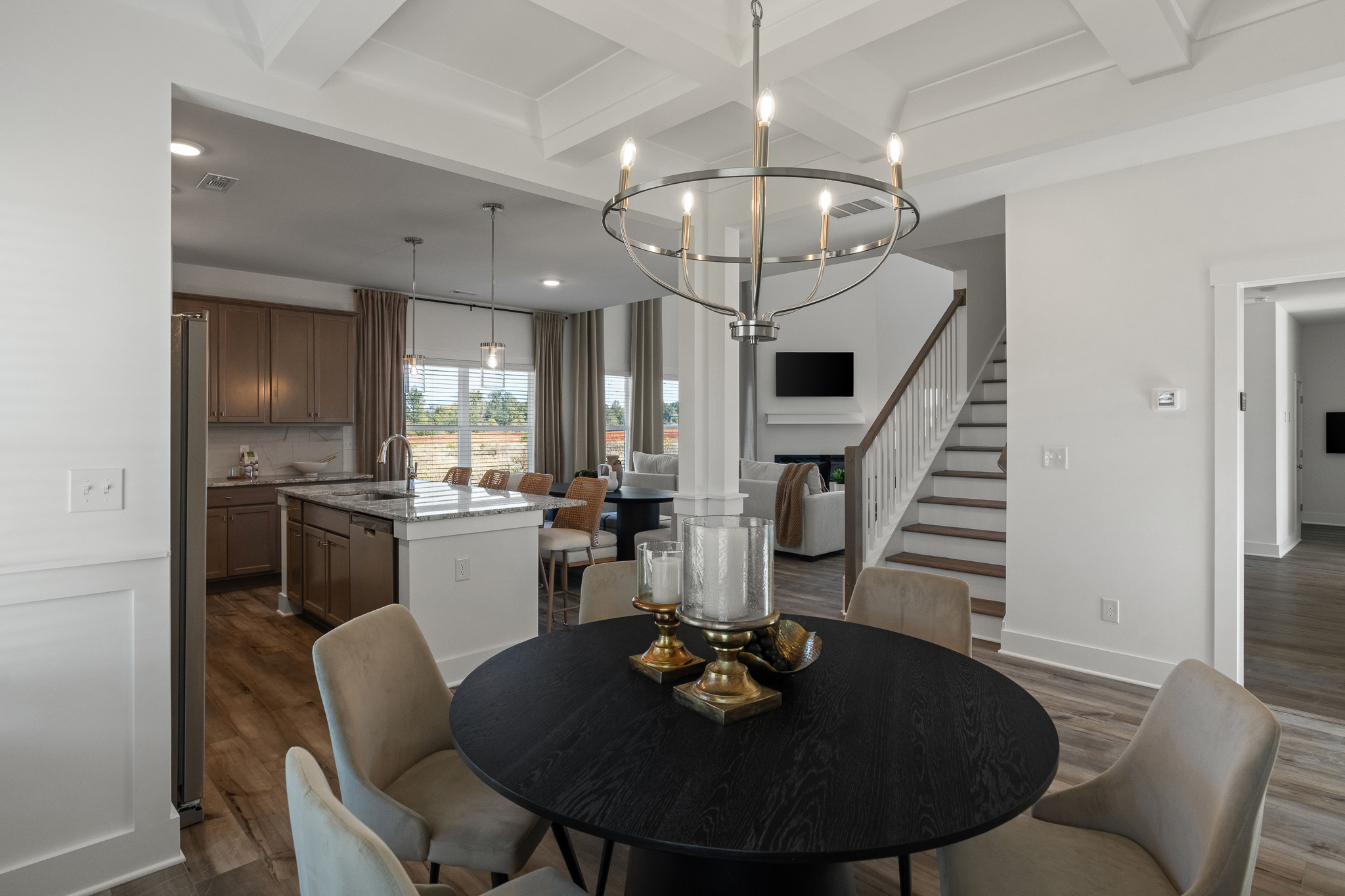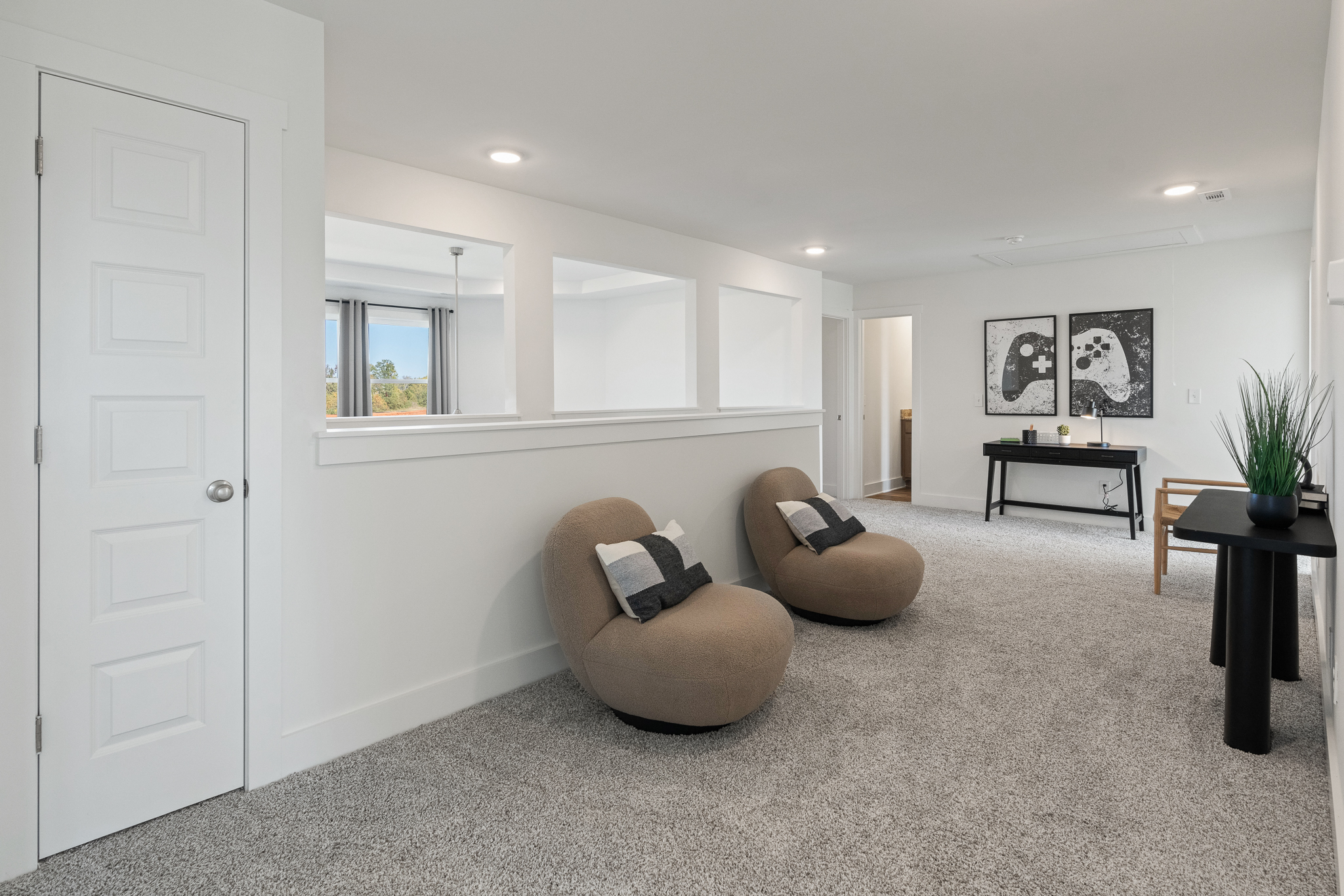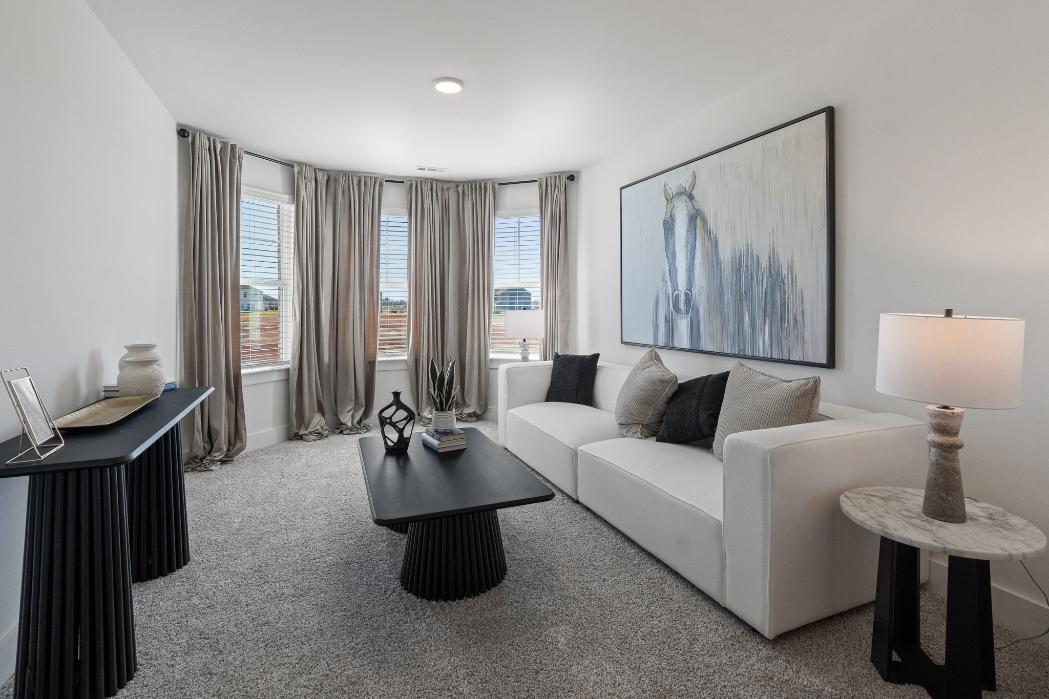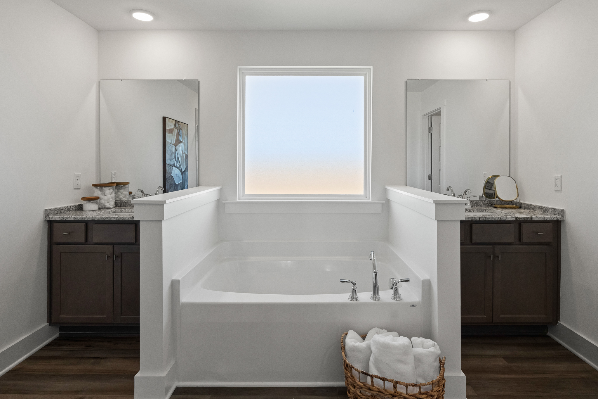 The Laurel plan has 2,800 square feet and is one of our most popular plans boasting a dramatic 2 story family room and a luxurious primary suite featuring a gorgeous sitting area with bay windows. From the beautifully appointed exterior with bay windows, enter the 2-story foyer. The dining room with its coffered ceiling opens conveniently to the eat in kitchen and flows seamlessly into the dramatic 2 story family room with corner fireplace. Enjoy all the natural light cascading inside from the multitude of windows across the back of your home. As you make your way upstairs you experience the spaciousness of the home design. The primary suite is complete with a separate sitting area featuring bay windows, a trey ceiling in the bedroom & the perfect bathroom to relax & rejuvenate. The 2nd floor has 3 additional bedrooms, 2 full baths & spacious loft for entertaining. One more bedroom & bath downstairs for your guests or you can turn it into a cozy office space.