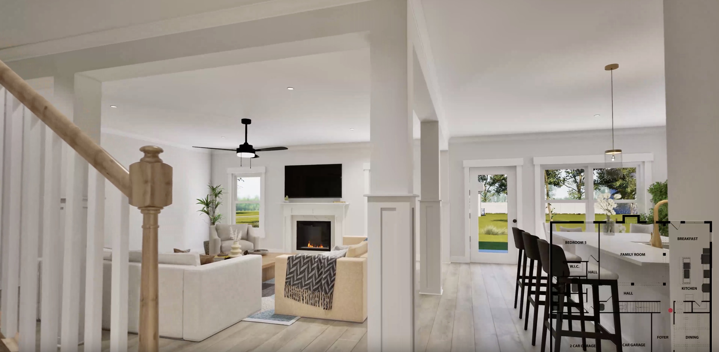 Step into the two-story foyer, opening to a dramatic dining room with a coffered ceiling. The open-concept kitchen and family room flow seamlessly, creating the perfect space for entertaining or spending time with loved ones. Gather around the quartz countertop island in the kitchen, or take the fun outside to the GameDay Porch with its cozy fireplace. Upstairs, retreat to the expansive primary suite featuring a trey ceiling, a serene sitting area with a fireplace, a spa-like shower, and a soaking tub for ultimate relaxation. The loft area is ideal for a home office, while two bedrooms are connected by a convenient Jack-and-Jill bath, and guests enjoy their own en-suite downstairs. The third floor adds a large bonus room and an additional bedroom with a full bath, plus a spacious three-car garage—perfect for families seeking space, style, and functionality.