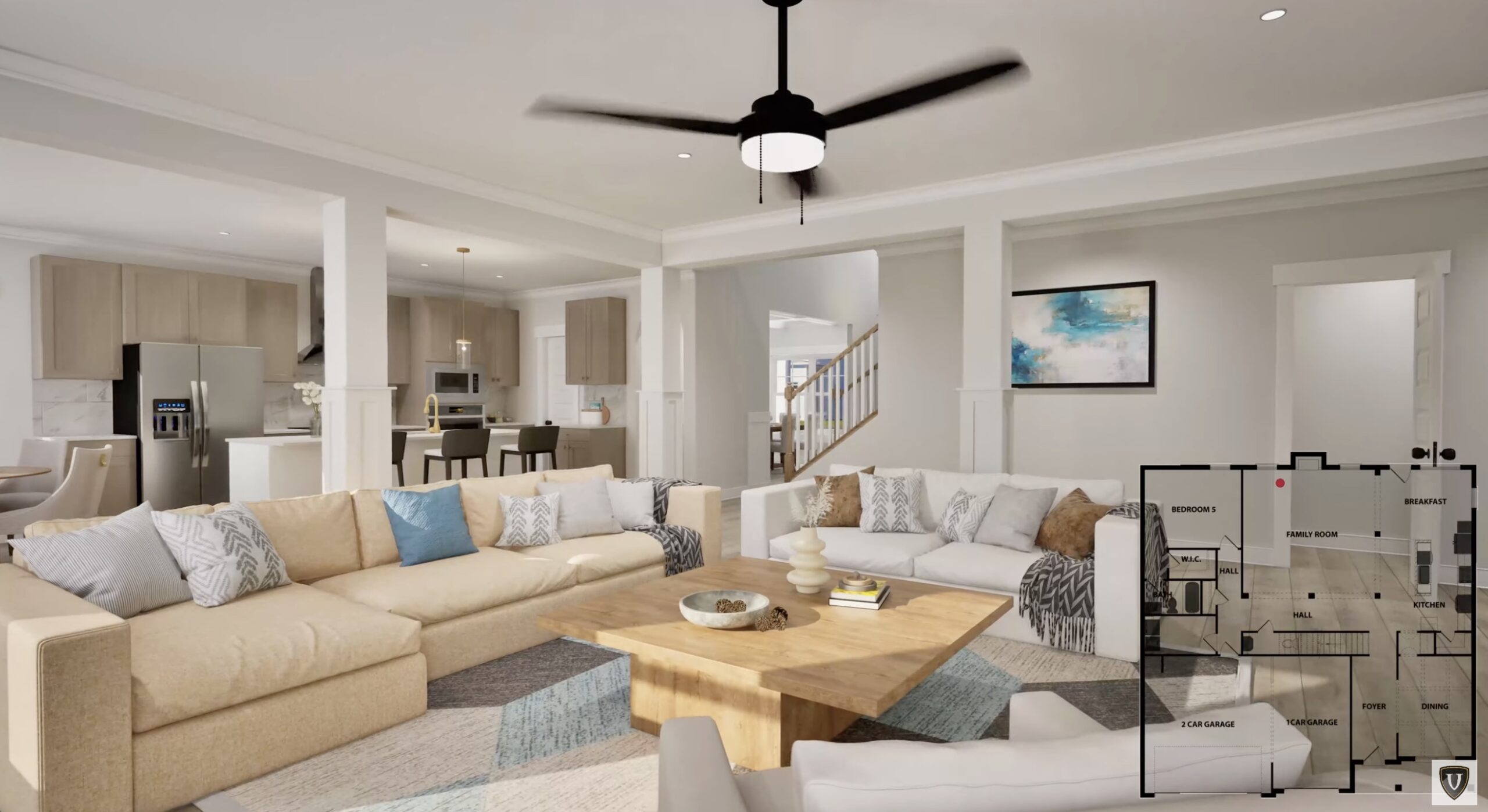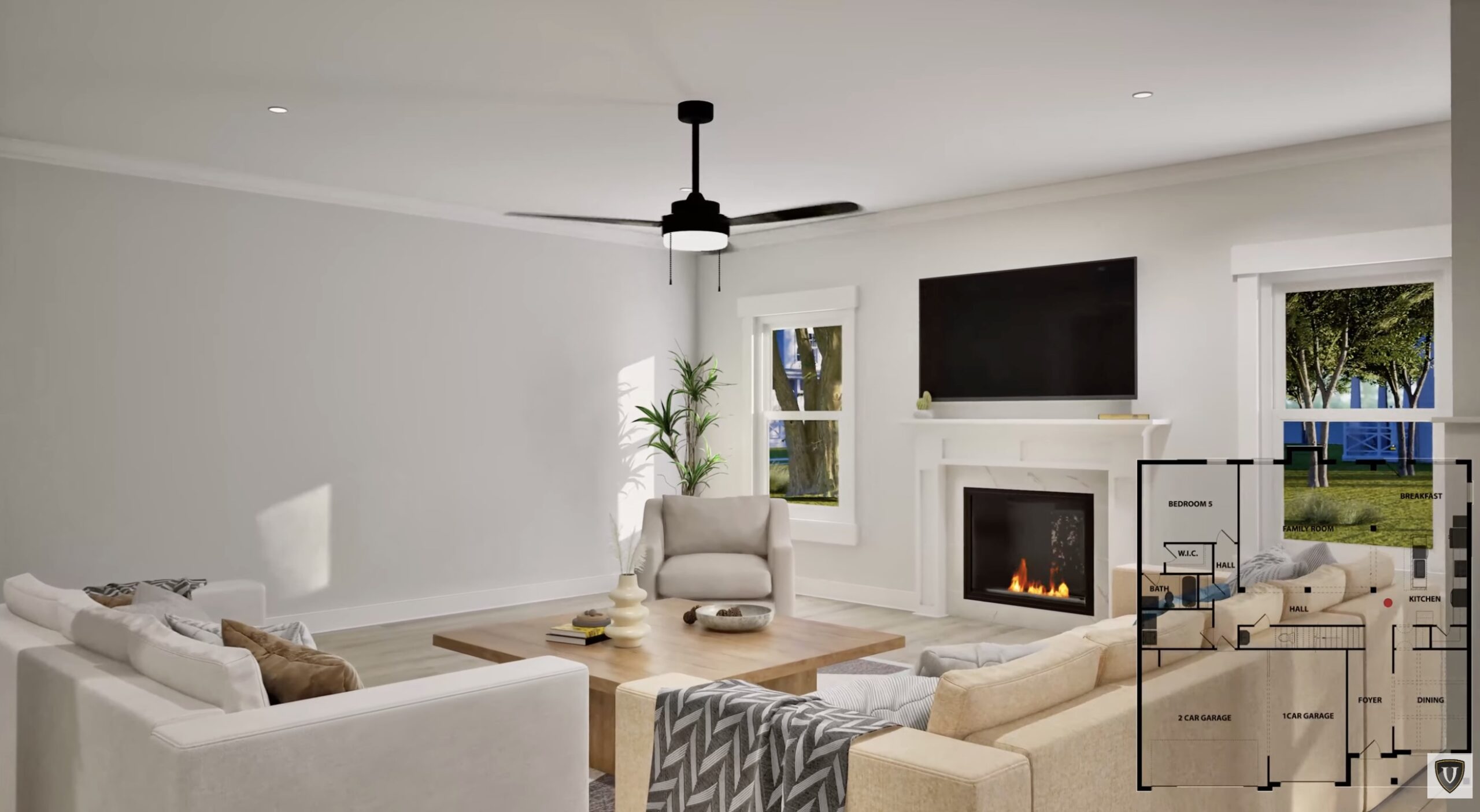 Step into the two-story foyer of the Rosemary III, opening to a dramatic dining room with a coffered ceiling. The open-concept kitchen and family room flow seamlessly, creating the perfect space for entertaining or spending time with loved ones. Gather around the quartz countertop island in the kitchen, or take the fun outside to the GameDay Porch with its cozy fireplace.