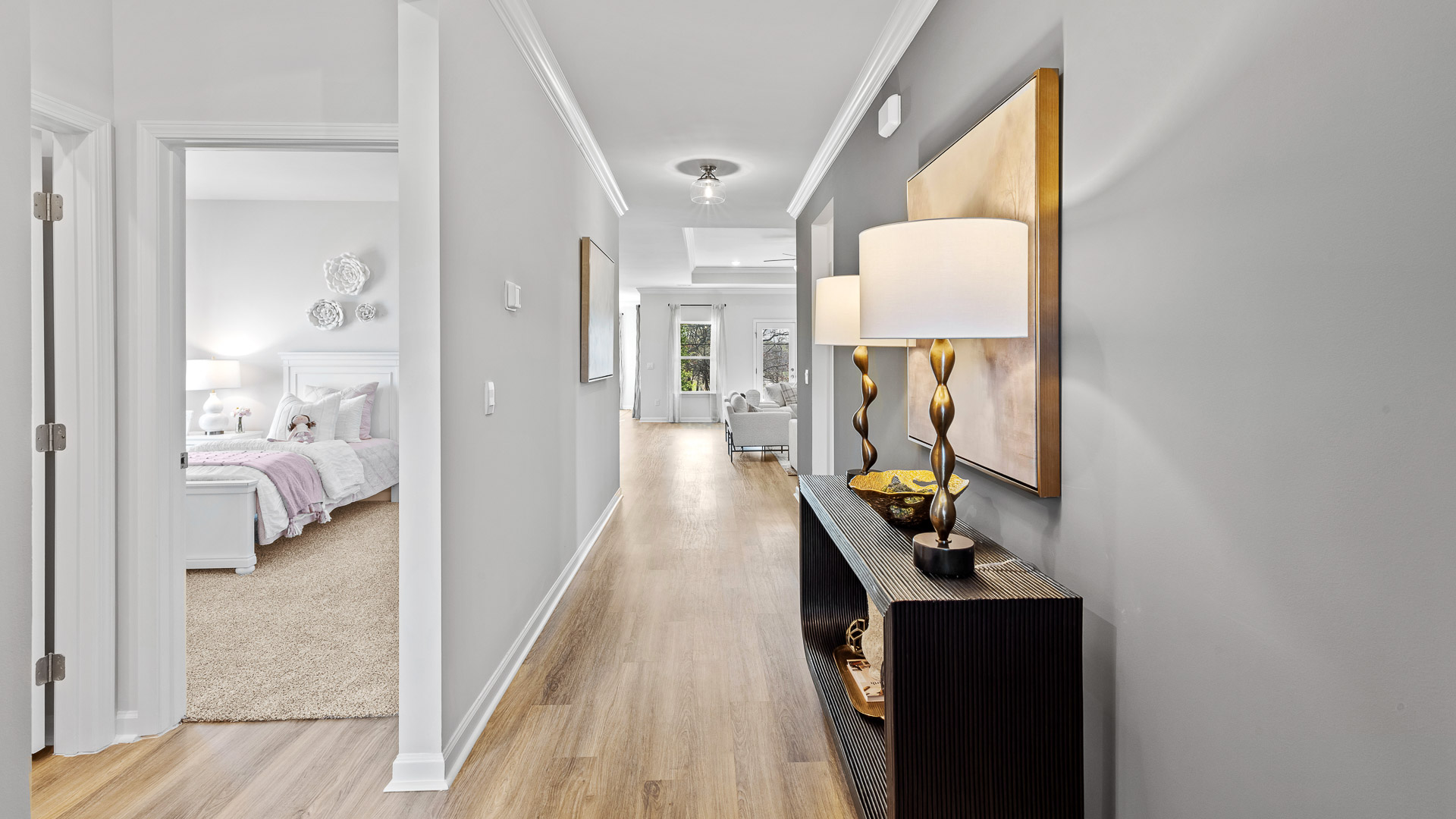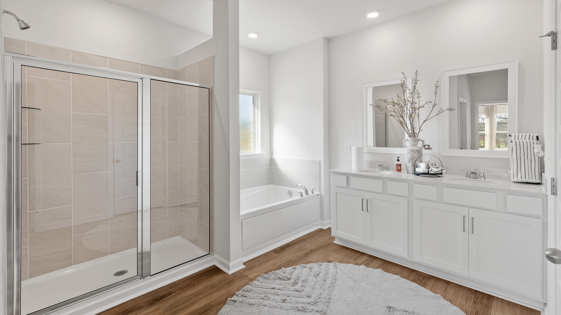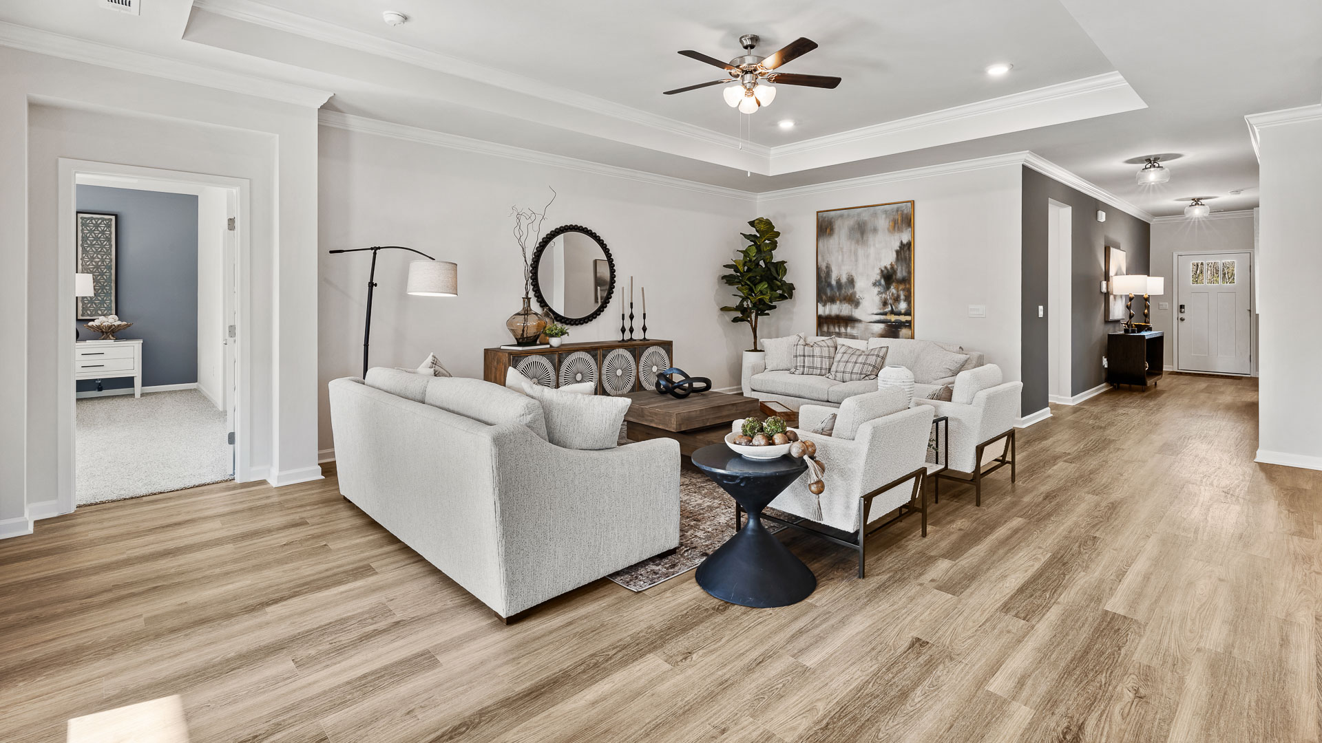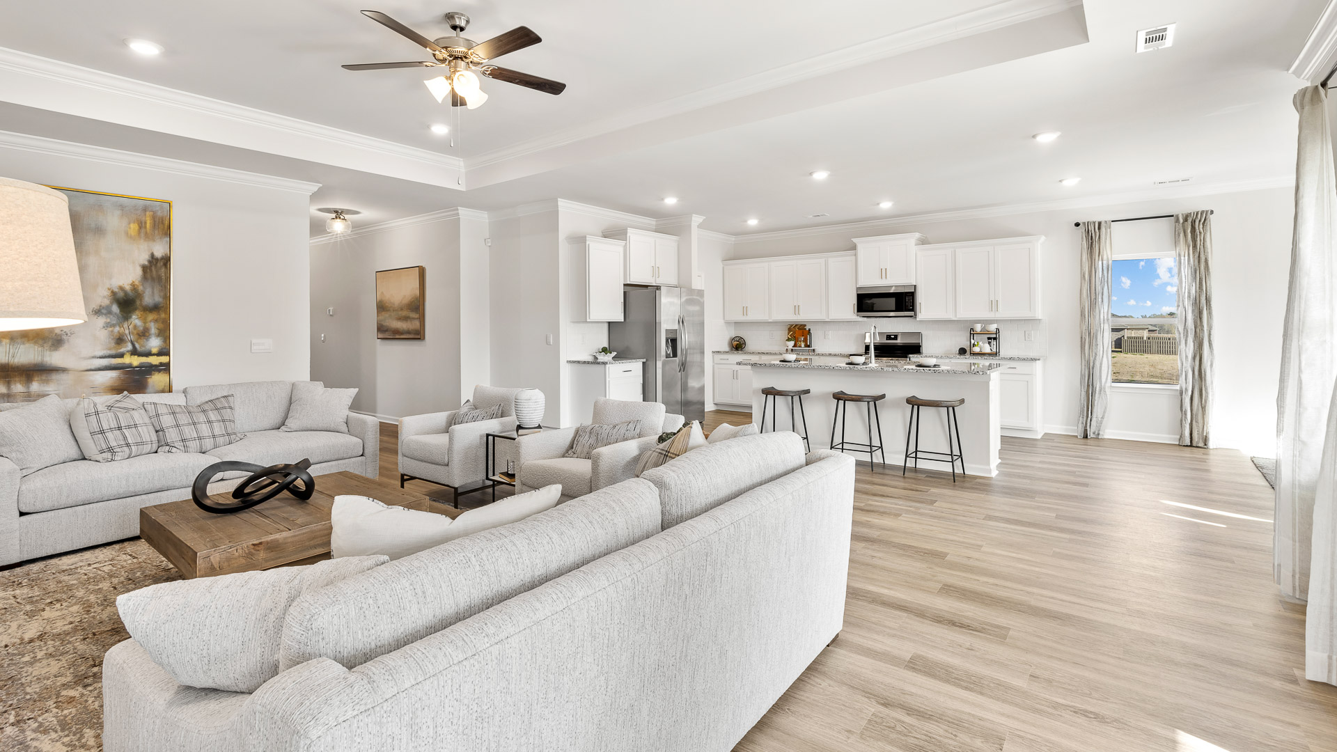 The Fraser is a 4-bedroom, 3-bathroom home with over 2,500 square feet of living space and a 3-car garage. It’s designed for multi-generational living, featuring a separate living area, bedroom, and bathroom for privacy. The private primary bedroom includes an ensuite bathroom with a walk-in shower or garden tub, and a spacious walk-in closet. Two guest bedrooms share a full bathroom, and large windows fill them with natural light. The dining room is perfect for family gatherings, while the kitchen features granite countertops, an island, and high-end appliances. The great room offers an open layout for relaxation or entertaining. The home includes the Home is Connected smart technology for easy control.
